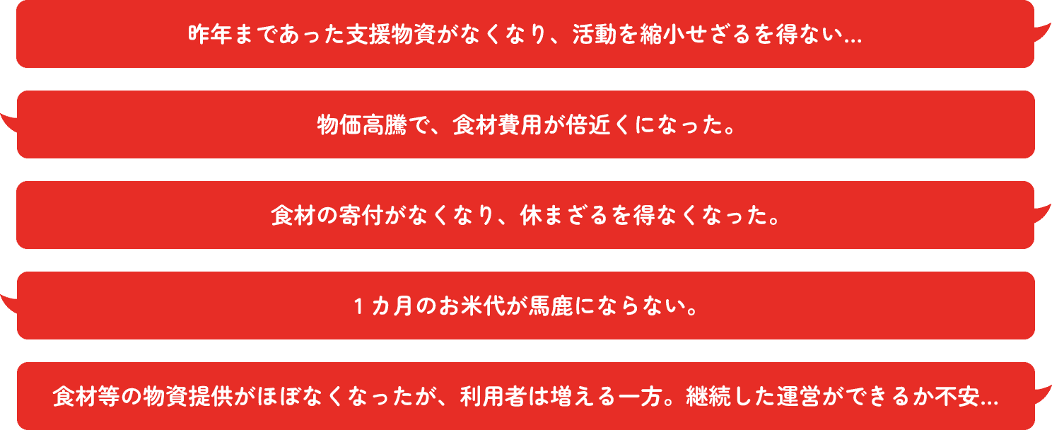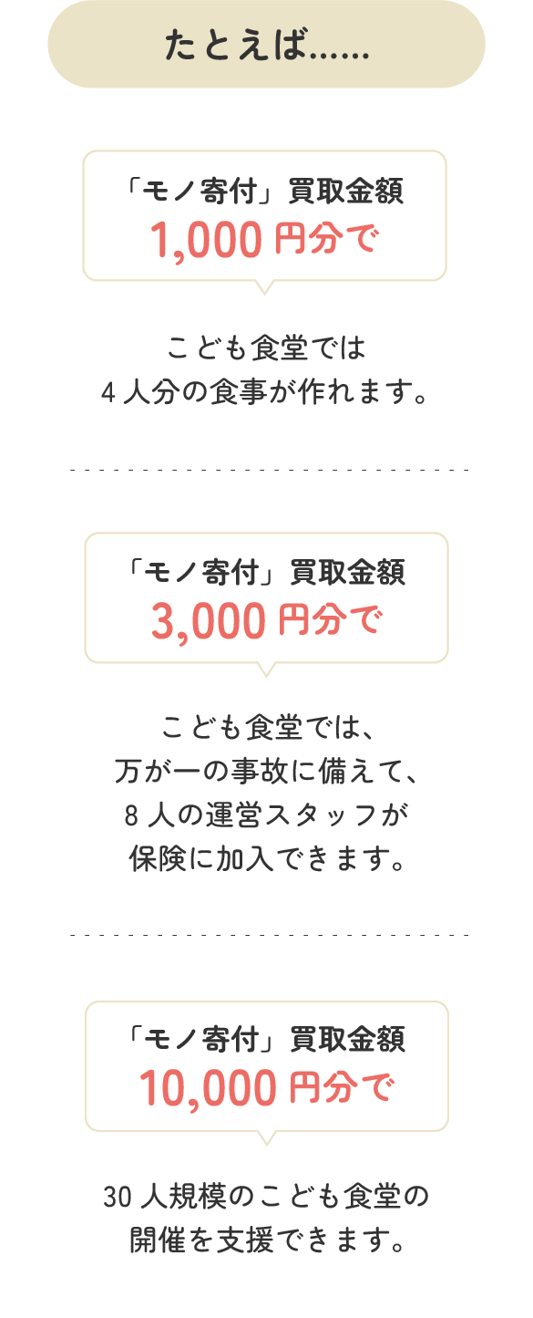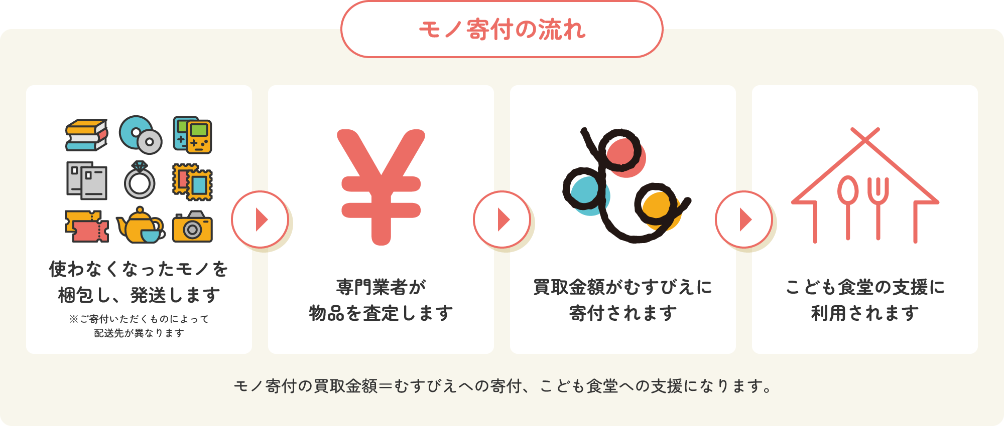 「モノ寄付」で届いたご支援は、むすびえを通じて全国のこども食堂を支えるさまざまな活動に活用します。
