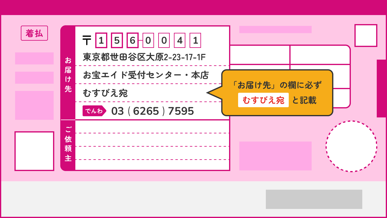 ※お届け先情報には、必ず「むすびえ」と宛名をご記入いただくようお願いいたします。