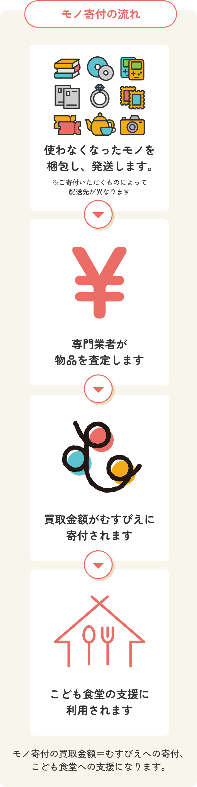 「モノ寄付」は、それらを活用する寄付の方法です。寄付されたモノが査定され、