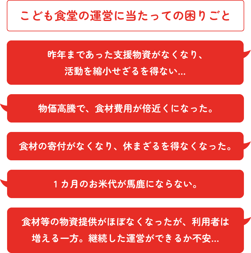 切手やはがき1枚からでも、集まればこども食堂の運営者や利用者の方々を支える大きな力になります。