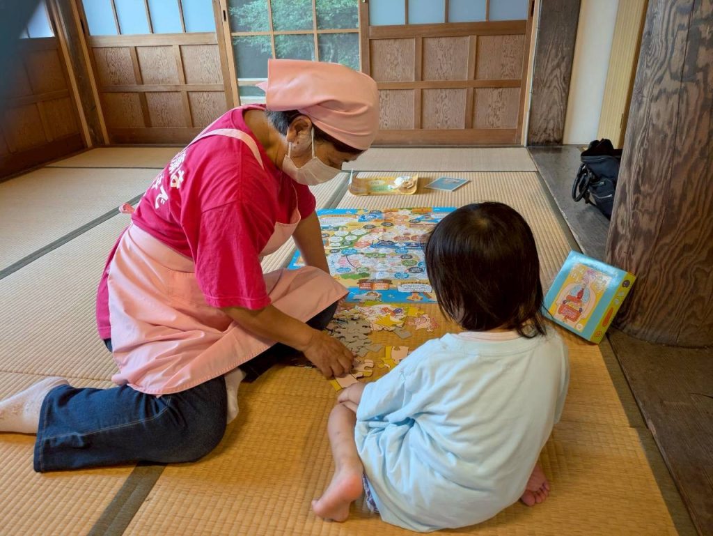 来られた方から順番に食事をいただき、その後、パズルやすごろく、カルタ、神経衰弱などの食育教材を使って遊びました。にぎやかなひとときとなり、子どもたちが遊びながら食について学べる時間になりました。