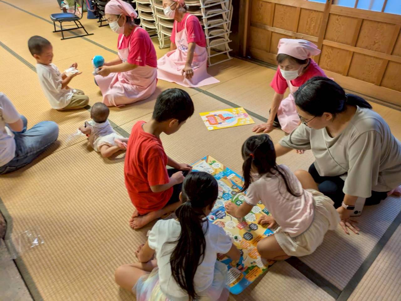 今回は、長門市の健康増進課を通じて食生活改善推進員さんにもお声掛けをし、一緒に参加していただきました。こども食堂は初めて、という方が多かったのですが、事前に「こども食堂ってどんなところ?」「ボランティアの心得」などを共有していたこともあり、安心してスムーズに活動に取り組んでいただけました。普段から市民の健康のためにボランティア活動をされている皆さんなので、子どもたちへの声かけも優しく丁寧で、年齢に合わない教材も工夫して楽しんでもらう様子が見られました。