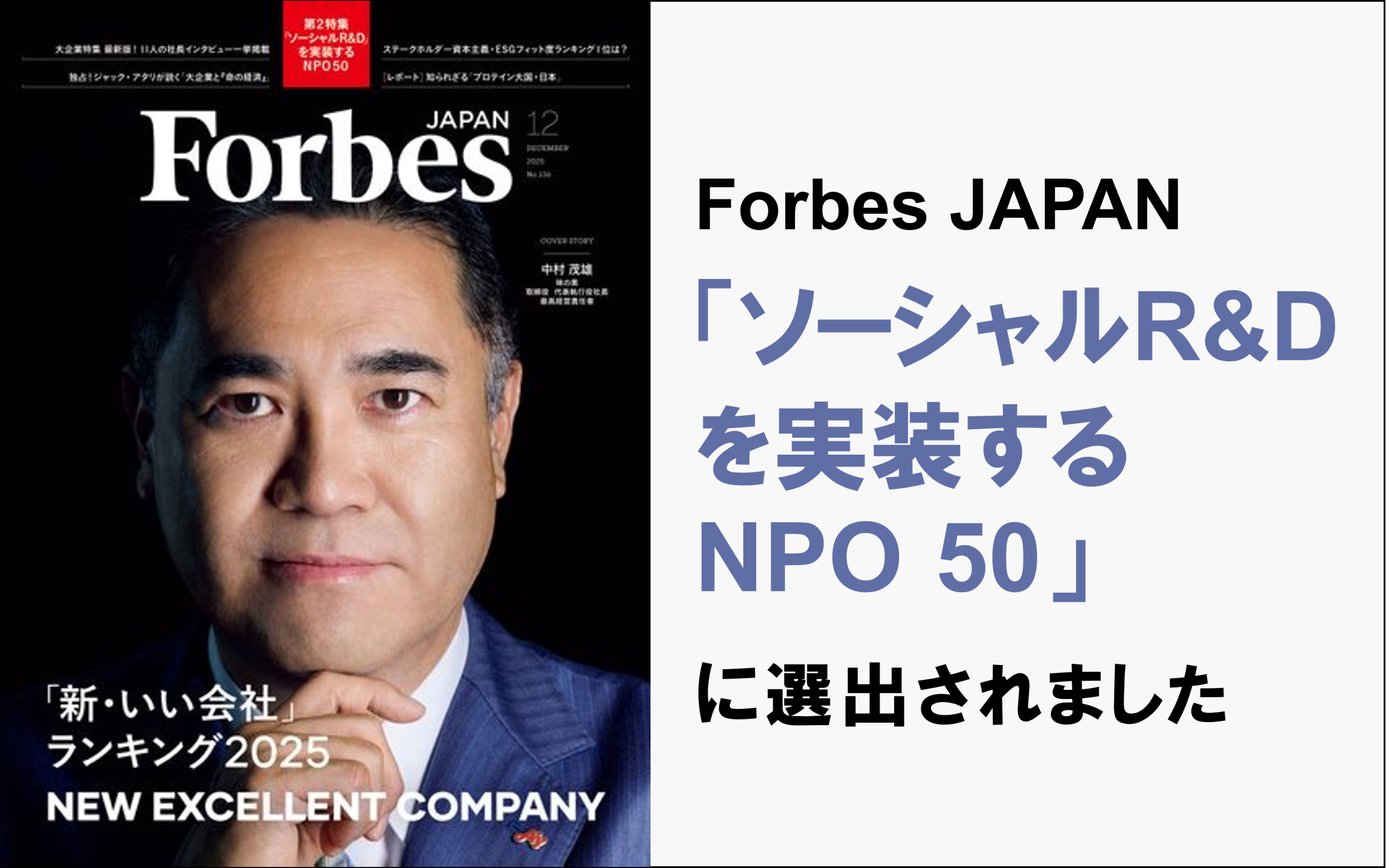 むすびえがForbes JAPAN「ソーシャルR&Dを実装するNPO50」に選出されました ~政府や市場がとりこぼしてしまう課題に向き合い、社会課題を解決するNPOとして高く評価~