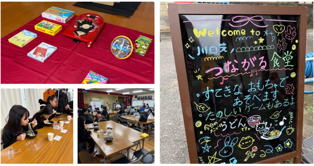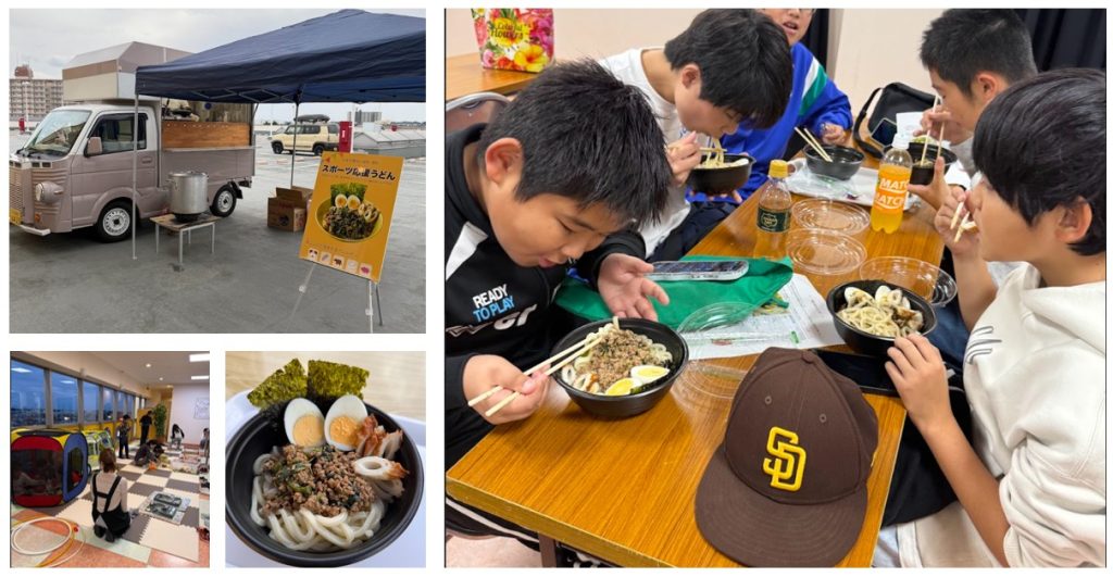 一風変わったうどんのメニューには、子どもたちは「いいにおい!」「おいしい!」と笑顔を見せながら、夢中になって食べていました。見た目にも楽しく、味わいも工夫されたうどんは大好評。食事をきっかけに自然と会話が生まれ、会場は笑い声と温かな雰囲気に包まれていました。美味しく楽しい空間のなかで、終始たくさんの人が集い、地域のつながりを感じられる、にぎやかなひとときとなりました。