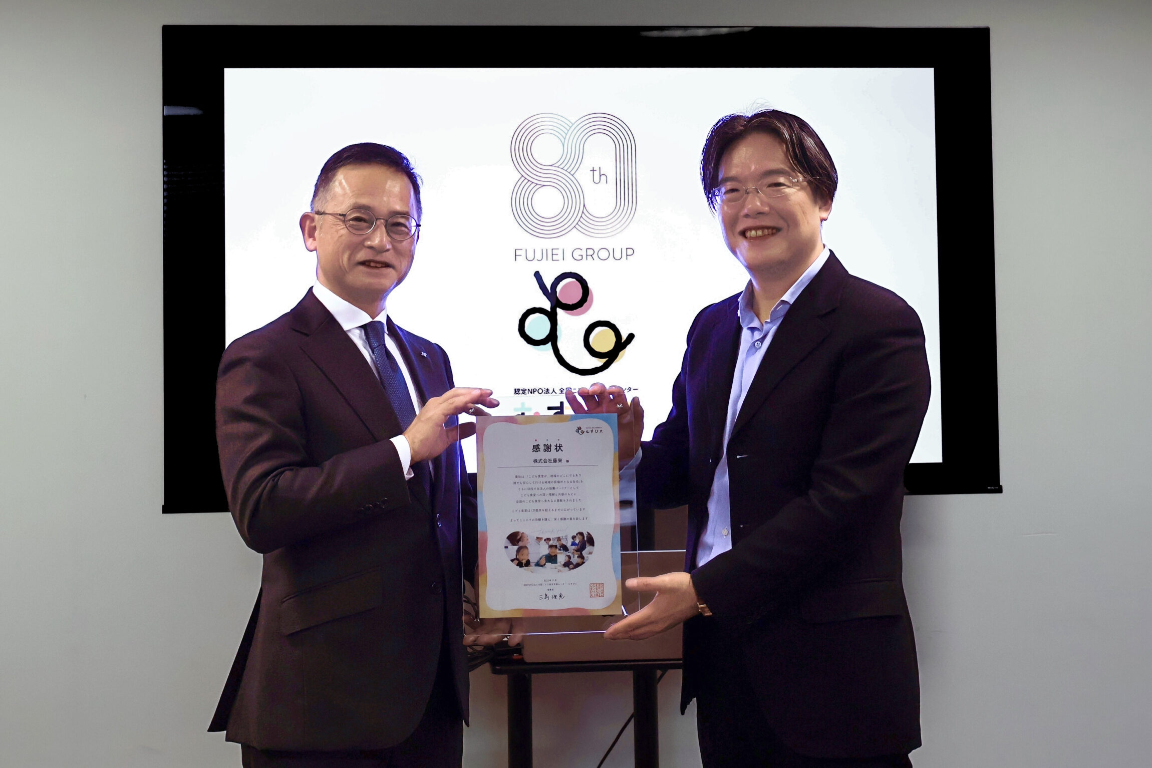株式会社藤栄は、生活に欠かせない家庭用品や家具・インテリアなどをベースに、付加価値ある商品の開発や品揃えの充実を通じて、社会に貢献しようと活動されています。このたび、同社の創業80周年記念事業としてむすびえにご寄付をいただきました。