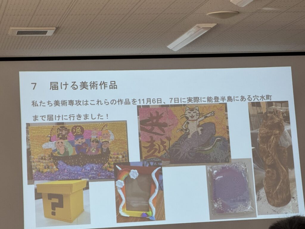 まずは高遠高校美術専攻メンバーによる能登支援の報告。