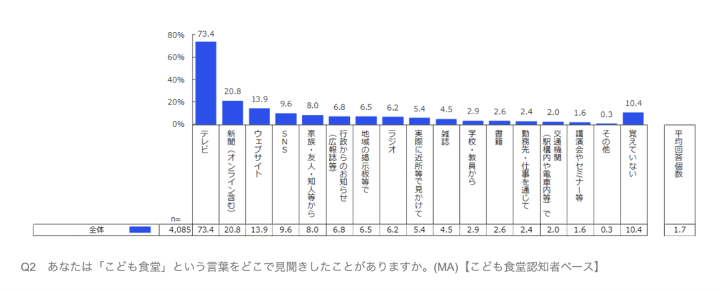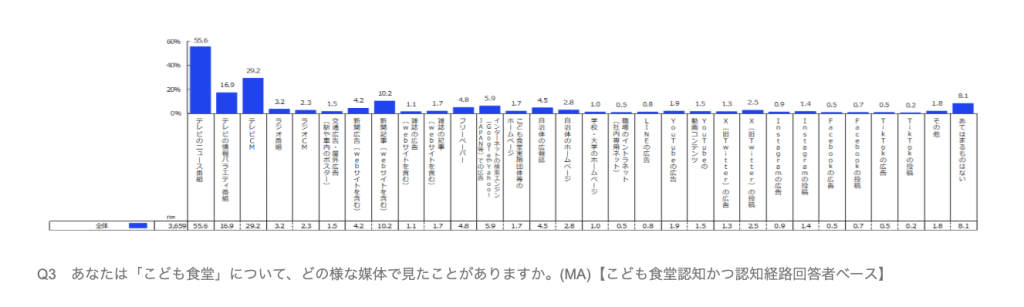 ・こども食堂の認知経路は1位「テレビ」、2位「新聞」、3位「ウェブサイト」