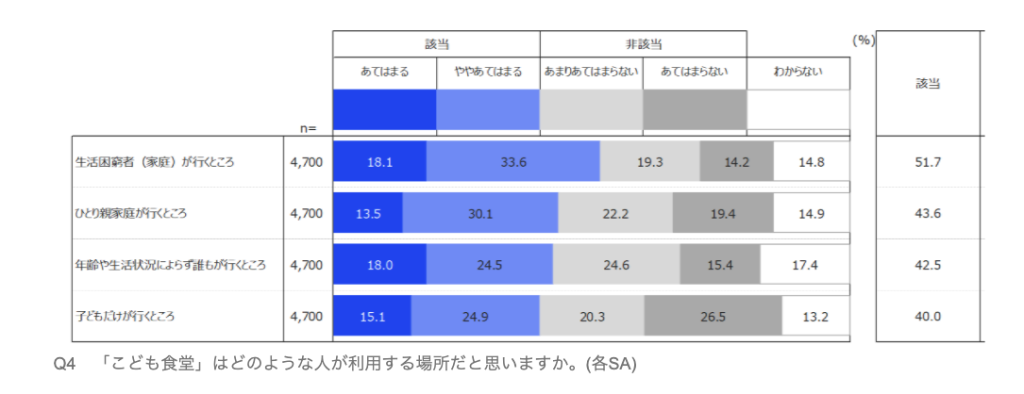こども食堂の利用対象のイメージでは「誰もが行くところ」が4割超で“ひらかれた場”のイメージも広がる