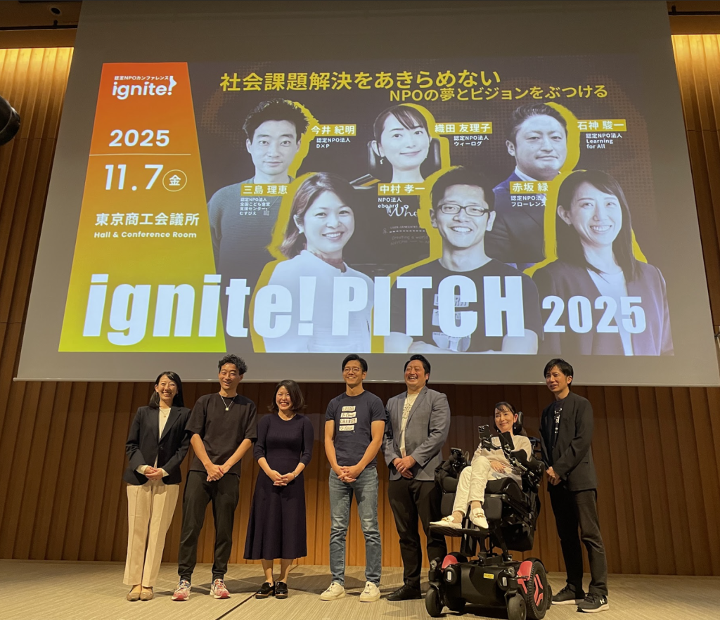 「ignite! PITCH 2025」では、認定NPO法人フローレンス、認定NPO法人Learning for All、認定NPO法人eboard、認定NPO法人D×P、認定NPO法人ウィーログとむすびえの6団体が登壇。それぞれのプレゼンターによる、社会を変えていきたいという想いや願いが込められた、熱いプレゼンテーションが繰り広げられました。