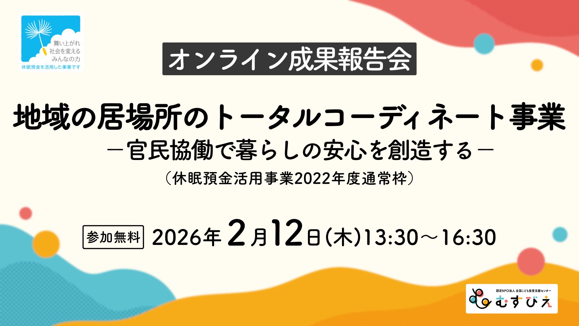 【2/12(木) 開催のご案内】オンライン成果報告会「地域の居場所のトータルコーディネート事業 -官民協働で暮らしの安心を創造する-」