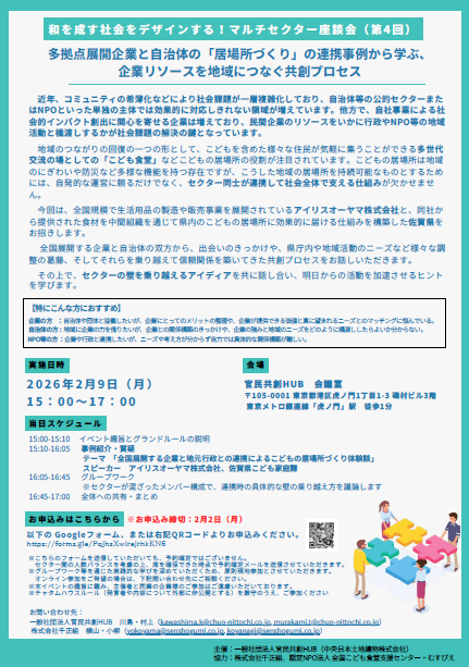 テーマ:多拠点展開企業と自治体の「居場所づくり」の連携事例から学ぶ、企業リソースを地域につなぐ共創プロセス