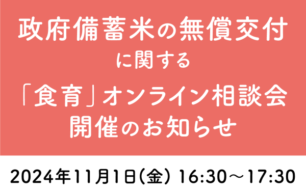 【ご案内】政府備蓄米の無償交付に関する「食育」オンライン相談会を開催します